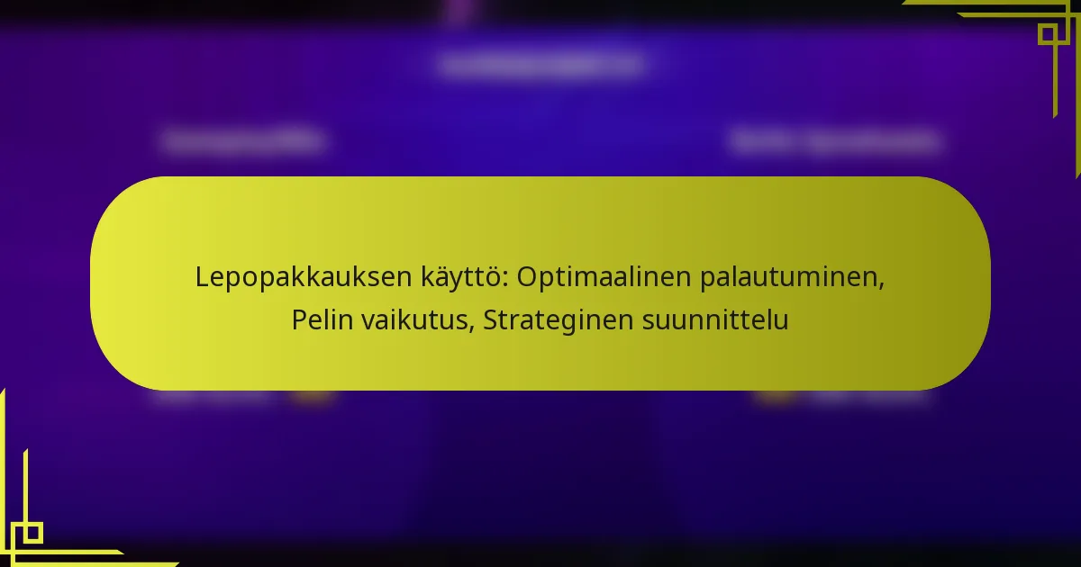 Strateginen suunnittelu lepopakettien käytölle sisältää ajoituksen, resurssien jakamisen ja sopeutumisen pelitilanteisiin. Tehokas käyttö voi parantaa palautumista ja parantaa kokonaispelin tehokkuutta, jolloin pelaajat voivat tehdä kriittisiä päätöksiä, jotka vaikuttavat otteluiden lopputulokseen.
